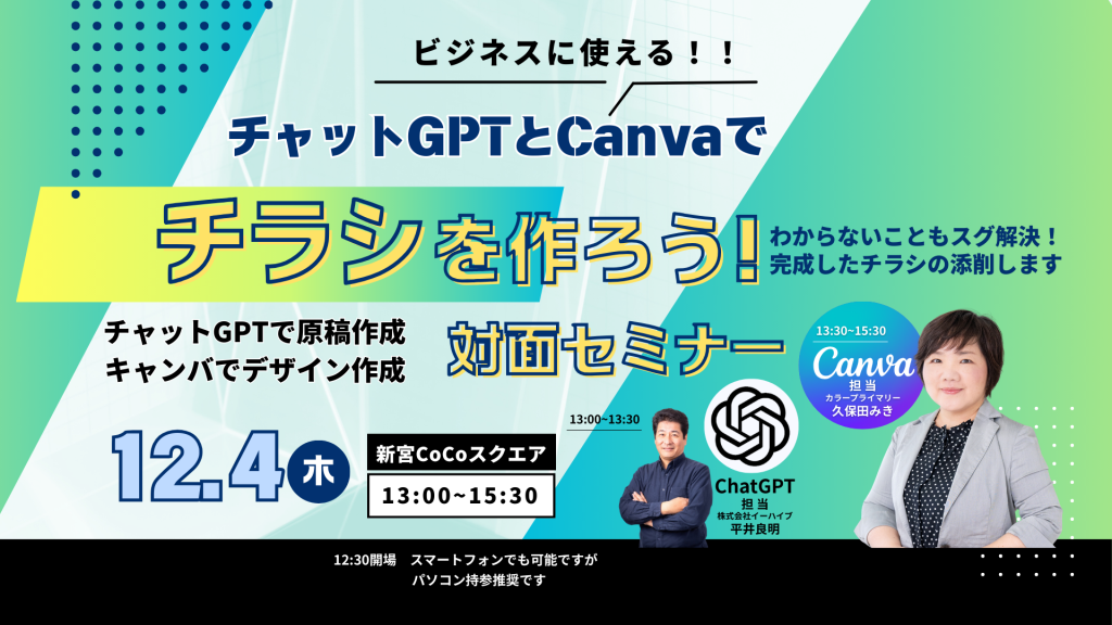 チャットGPTとキャンバでチラシを作ろう!セミナー開催